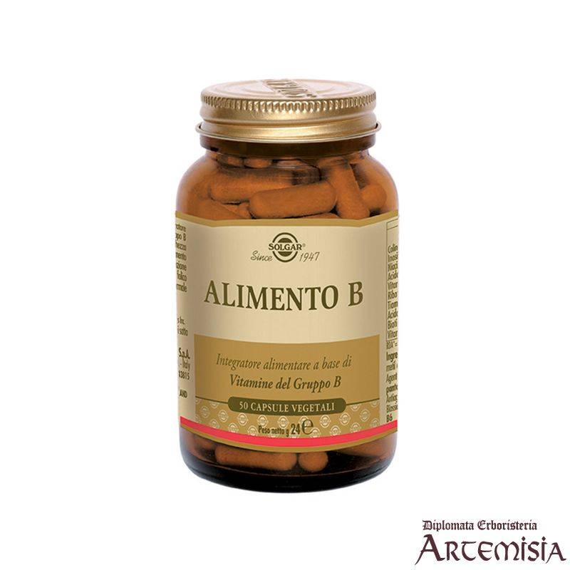 Alimento B è un integratore a base di Vitamine del Gruppo B. La vitamine B2, B6, la niacina, acido folico e la vitamina B12 contribuiscono alla riduzione di stanchezza e affaticamento e alla funzione psicologica; le vitamine B1, B2, la niacina, la biotina e la vitamina B12 contribuiscono al normale funzionamento del sistema nervoso; colina, vitamina B6, acido folico e vitamina B12 contribuiscono al normale metabolismo dell'omocisteina.