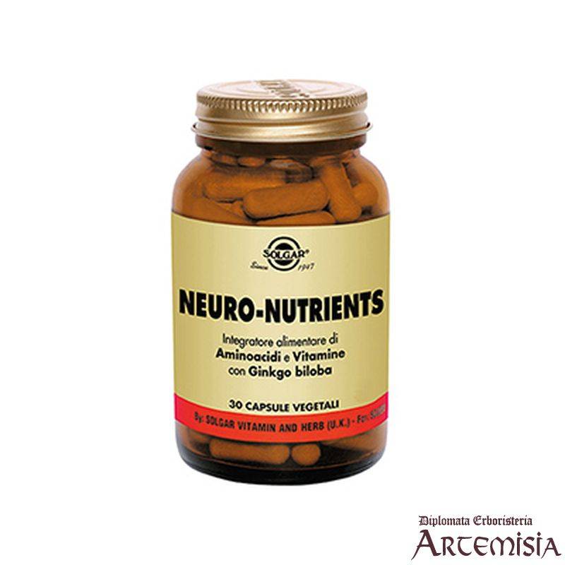 NEURO-NUTRIENTS è l'integratore alimentare a base di vitamine (C,B2,B3,B6) che contribuiscono al metabolismo energetico e alla riduzione di stanchezza e affaticamento e insieme alla vitamina B1 contribuiscono al normale funzionamento del sistema nervoso. Contiene aminoacidi (L-Fenilalanina, L-Tirosina, L-Glutammina) e colina che agiscono da precursori di neurotrasmettitori cerebrali. Il Ginkgo biloba L. favorisce la funzionalità del microcircolo e rappresenta un sostegno per la memoria e le funzioni cognitive oltre ad avere un'azione antiossidante.