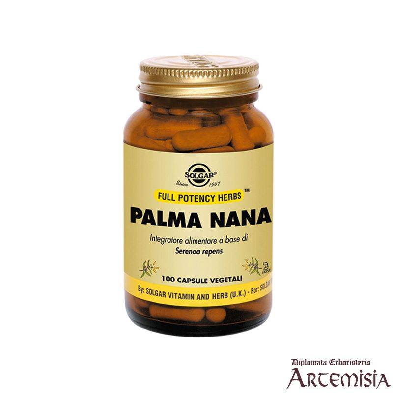 La palma nana (Serenoa repens Bart.) è un piccolo albero di palma nativo dell'India Occidentale e della costa Atlantica del Nord America, dal Sud Carolina fino alla Florida. Nella tradizione popolare le radici di Palma nana trovano impiego come diuretico mentre i frutti venivano usati per l’azione sull’apparato urogenitale maschile. I frutti della palma nana contengono dei composti liposterolici in grado di sostenere la funzionalità prostatica e delle vie urinarie. Ottimo supporto per gli uomini.