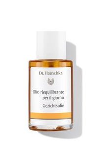 L’Olio riequilibrante per il giorno trasmette alla pelle un impulso mirato, aiutandola a produrre una minor quantità di sebo; applicato con regolarità, questo olio riporta in luce la naturale bellezza della pelle.La sua composizione a base di carota, olio di mandorla, calendula e neem svolge un’azione normalizzante e attenua gli arrossamenti. Un pool di pregiati estratti oleosi aiuta a riequilibrare la produzione di sebo e affina i pori.Condizione della pellePer la pelle grassa e impura.ApplicazioneDistribuire il prodotto sul viso, sul collo ed eventualmente sul décolleté la mattina dopo la detersione e la tonificazione. Per la pelle mista, il trattamento da giorno ideale è il Fluido idratante per il giorno abbinato a qualche goccia di Olio riequilibrante per il giorno; i due prodotti vanno mixati semplicemente sul palmo della mano prima di stendere il preparato sul viso, avendo cura di evitare il contorno occhi.Come trattamento di base per la notte privo di grassi consigliamo l’applicazione di un Siero Dr. Hauschka dopo la detersione e la tonificazione. Per trasmettere un impulso in più, sono indicati i trattamenti Dr. Hauschka in fiale, da effettuare in cicli di 28 giorni.Ingredienti:Anthyllis Vulneraria Extract, Prunus Armeniaca (Apricot) Kernel Oil, Prunus Amygdalus Dulcis (Sweet Almond) Oil, Arachis Hypogaea (Peanut) Oil, Daucus Carota Sativa (Carrot) Root Extract, Hypericum Perforatum Flower/Leaf/Stem Extract, Helianthus Annuus (Sunflower) Seed Oil, Calendula Officinalis Flower Extract, Triticum Vulgare (Wheat) Germ Oil, Melia Azadirachta Leaf Extract, Simmondsia Chinensis (Jojoba) Seed Oil, Triticum Vulgare (Wheat) Bran Extract, Fragrance (Parfum)*, Linalool*, Citronellol*, Citral*, Geraniol*, Farnesol*, Benzyl Benzoate*, Limonene*, Eugenol*, Benzyl Salicylate*, Lecithin, Theobroma Cacao (Cocoa) Seed Butter.*from natural essential oils